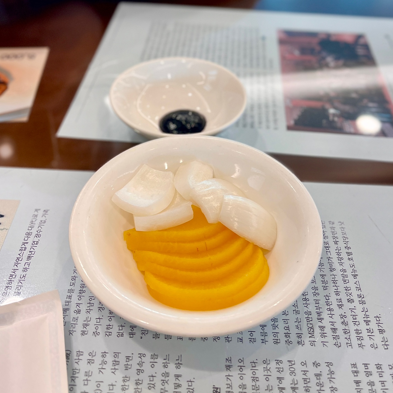 조금있으니 단무지와 양파와 자스민차를 가져다 주셨어요~